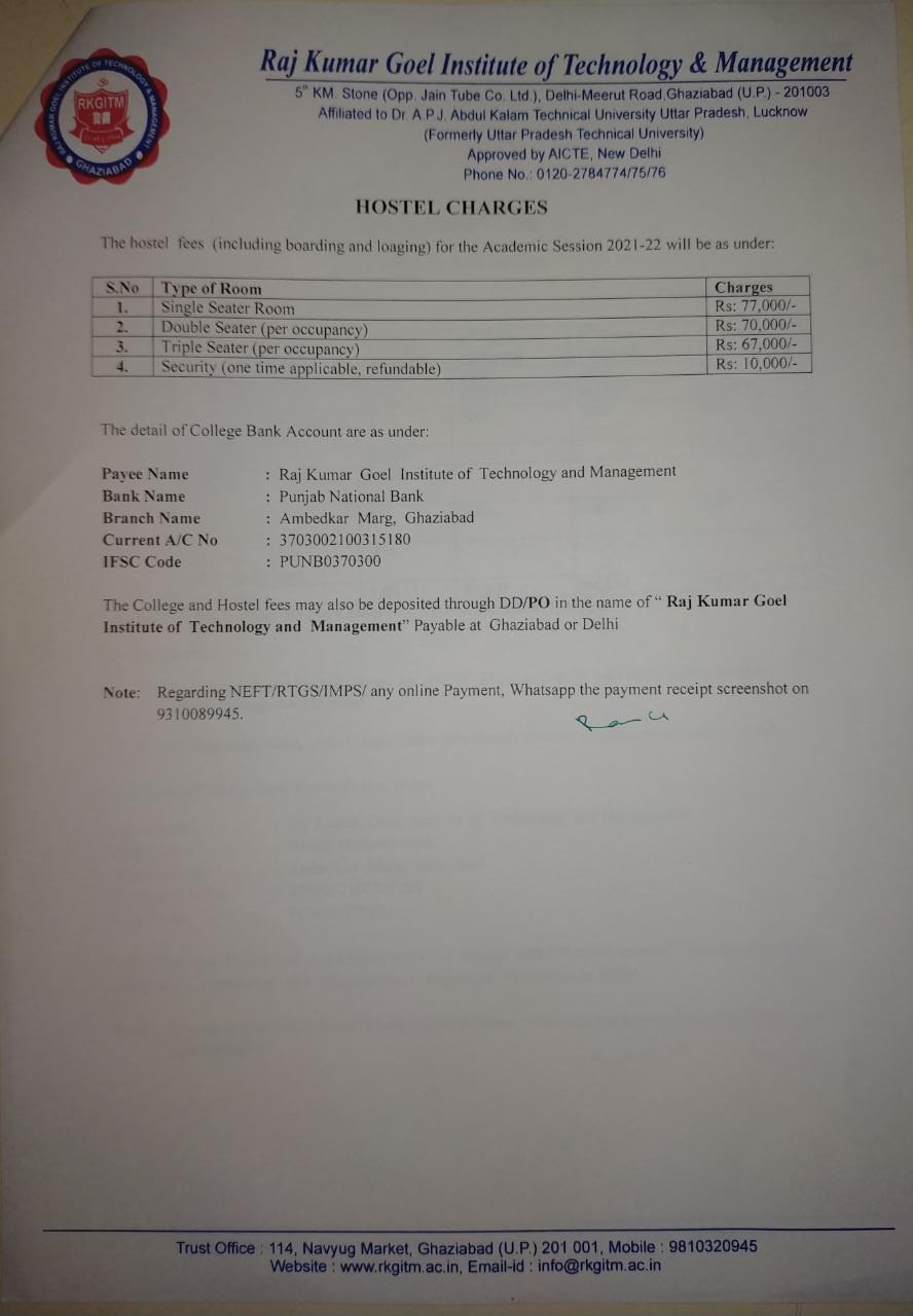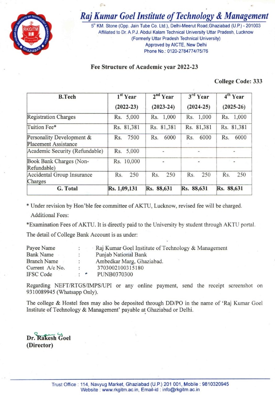 Admission to the B.Tech programme would be done on the basis of rank obtained in SEE - UPTU conducted by Uttar Pradesh Technical University, Lucknow. Admission to 85% of the total seats would be made through state level centralized counselling conducted by the University. 15% management seats are filled directly by the Institute by conducting Institute level counselling based on the merit of SEE- UPTU/AIEEE rank & merit in qualifying examination.